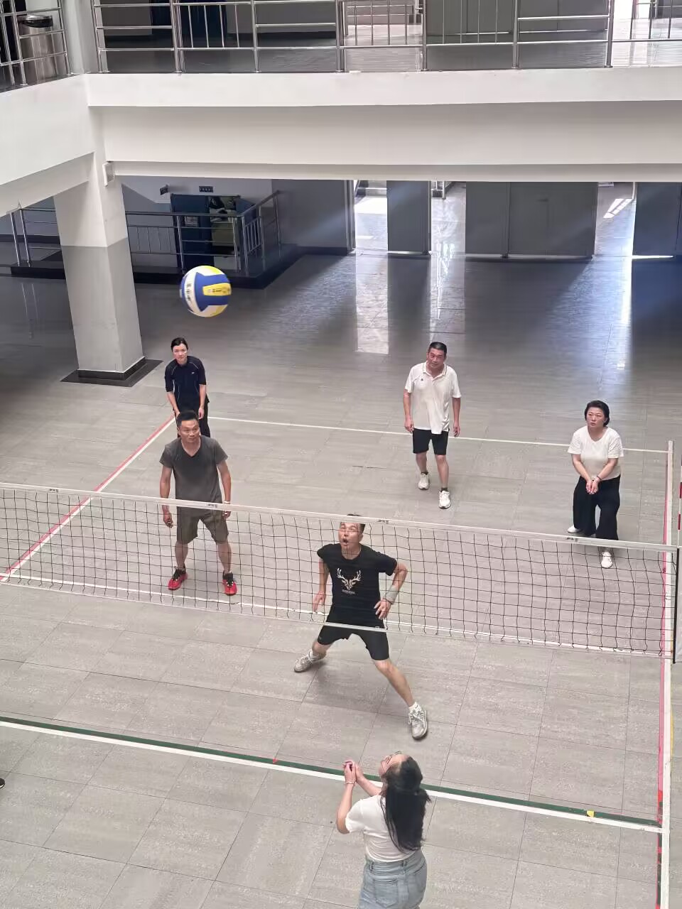 随后,将活动地点由会议室移至排球场,学院党员与教职员工举行了一场精彩的气排球友谊赛。精彩的接发球、默契的传球、犀利的扣球将比赛推向一个又一个高潮,赢得了此起彼伏的叫好声和欢呼声。比赛现场氛围热烈,参赛队员团结协作、默契配合,展现了活力马院、幸福马院的风采。(供稿:办公室 编辑:王玲 责编:陈志宏 初审:林小红 终审:汪红亮)