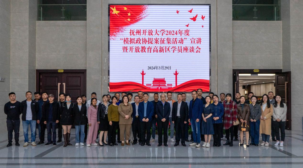 2022年至今,在抚州市政协提案委员会的精心指导下,抚州开放大学充分利用学生来自抚州社会各界的特点和优势,开展“模拟政协”活动,将“模拟政协提案”征集工作与思政课程融合,列入高职扩招“地方特色课程”、开放教育学生社会实践课程教学内容,开展“模拟政协提案”写作教学,指导学生调查研究,撰写模拟政协提案,引导学生有序政治参与。通过活动引导学生奔向广阔天地、深入基层一线,聚焦经济发展、民生保障、文化事业、生态环保等领域,深入基层开展调研,提出政策建议,将思政课抽象的政治概念变成了可参与、可实践的生动形式,受到社会各界的广泛关注,入选团中央首批“十大创新案例”,得到了抚州市政府、市政协主要领导的批示肯定。