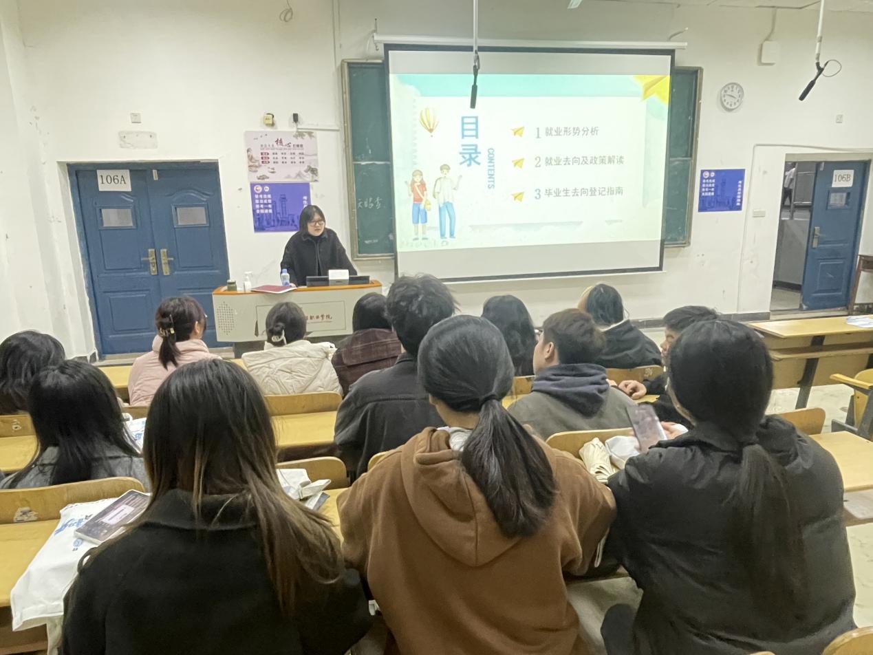 系列讲座围绕就业形势分析、就业去向及政策解读、毕业去向登记指南三个方面展开,旨在为同学们答疑解惑,明确就业方向,提供更加精准高效的就业规划指导。