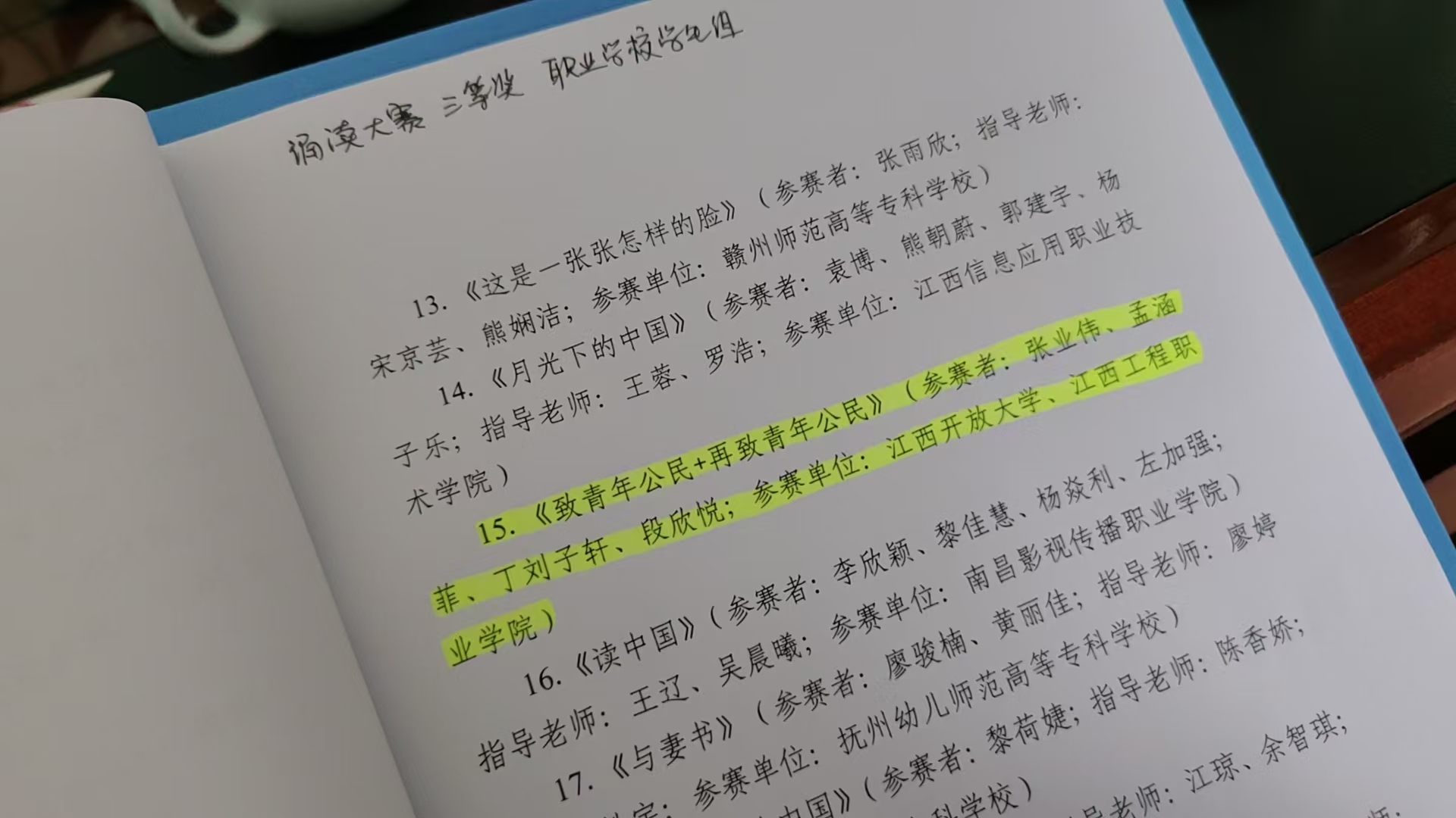 近日,由江西省教育厅举办的“中华经典行 赣鄱好声音”系列活动暨第六届中华经典诵写讲大奖赛落下帷幕,我院选送的朗诵作品《致青年公民+再致青年公民》入围国赛,并最终获得省级三等奖。