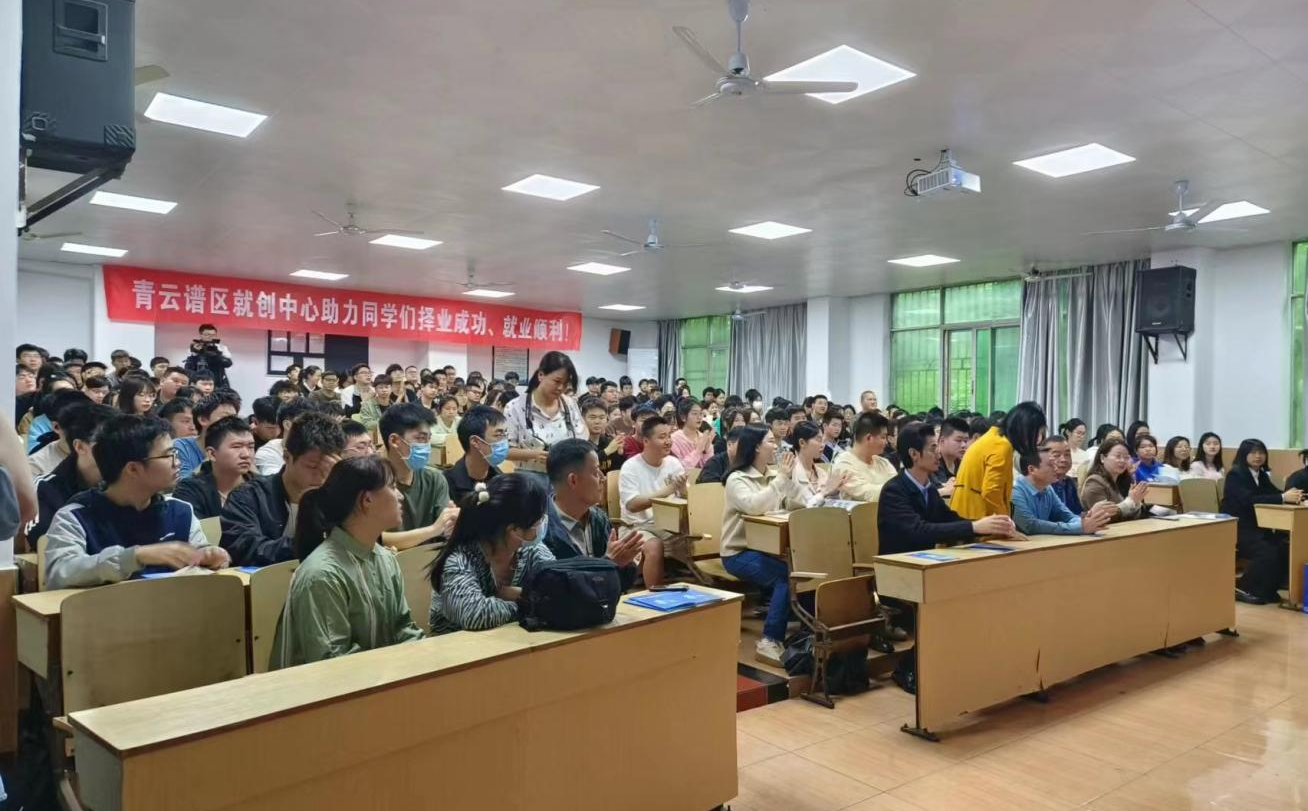 活动现场播放南昌市青云谱区宣传片、南昌人才10条政策宣传片,鼓励大学毕业生和技能人才来昌留昌创业就业,持续优化人才结构,强化人才支撑。世界500强企业中国电建集团江西省电力建设有限公司人事代表、江西九州通药业有限公司人事代表在活动现场播放公司的相关宣传片并用PPT的形式向毕业生们介绍公司的发展前景、招聘需求和薪资待遇等情况。活动还邀请到了知名创业导师郭轩辕先生为毕业生们就业、创业方向指导授课,解答了毕业生们在就业创业过程中所面对的相关问题。为了给毕业生提供更加便携、高效、多样的交流渠道,江西省电力建设有限公司、江西九州通药业有限公司现场举行了招聘面试,面试现场人头攒动,气氛热闹。活动最后进行了“青云智聘”软件的推广,为参加活动并且扫码注册的应届毕业生发放了《高校毕业生就业创业服务汇编》和纪念品。