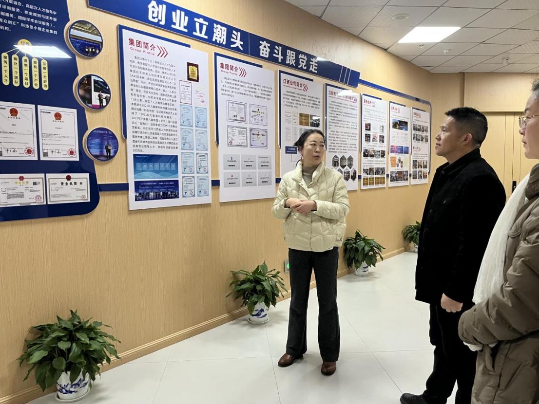 江西省博库信息技术有限公司总经理李晔琳对我院到博库人才创新创业基地访企拓岗表示热烈欢迎,并带领大家参观了基地且详细介绍了企业发展历程、企业文化、主营业务、人才需求、岗位设置、发展前景等情况,希望双方能加强校企合作和产教融合培养模式。