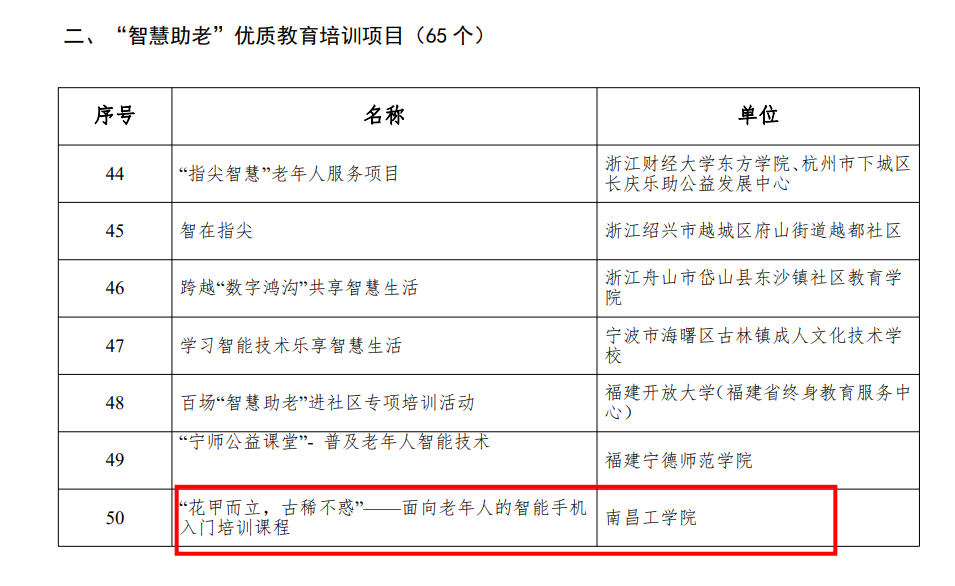 我省报送的《“花甲而立,古稀不惑”——面向老年人的智能手机入门培训》入选教育部第一批“智慧助老”教育培训项目