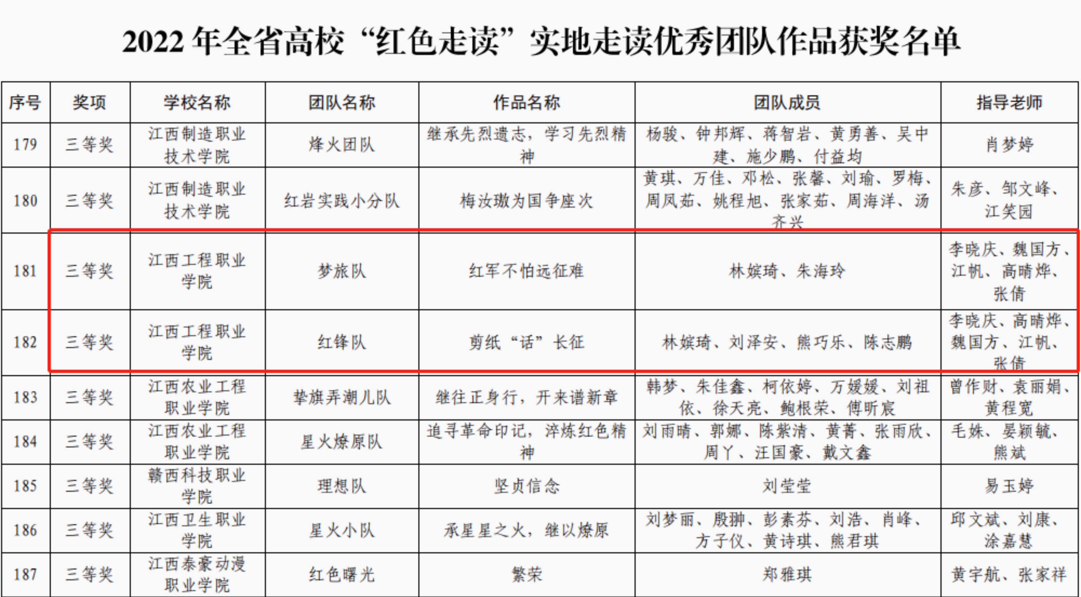 近日,省委教育工委、省教育厅公布了2022年全省高校“红色走读”活动获奖情况,数字经济学院获得优异成绩。其中,在“红色走读”系列活动中,实地走读优秀团队作品荣获三等奖2项,1支队伍作品荣获优秀“云游”作品。