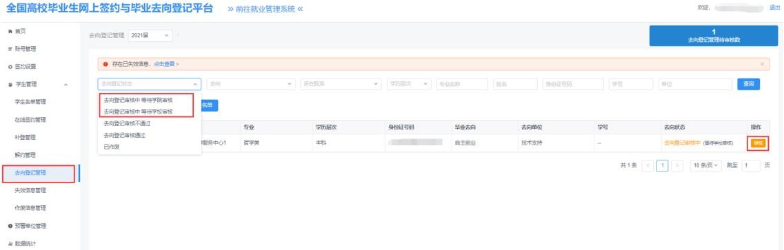 院系审核之前,可自行撤回重新编辑去向信息再提交院系审核。若去向信息审核通过后需签约或重新登记其他去向信息,毕业生可在去向信息详情页点击“作废” 按钮自动作废原去向信息,无需院系审核,但院系用户可查看作废记录。