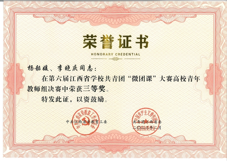 近日,中共江西省委教育工委、共青团江西省委公布了“学习二十大 永远跟党走 奋进新征程”第六届江西省学校共青团“微团课”大赛获奖情况,我院荣获高校青年教师组三等奖1项,高校学生组二等奖1项。