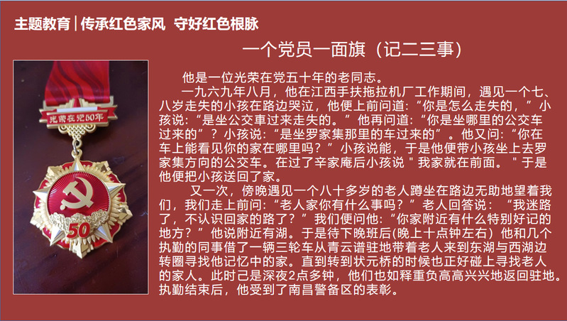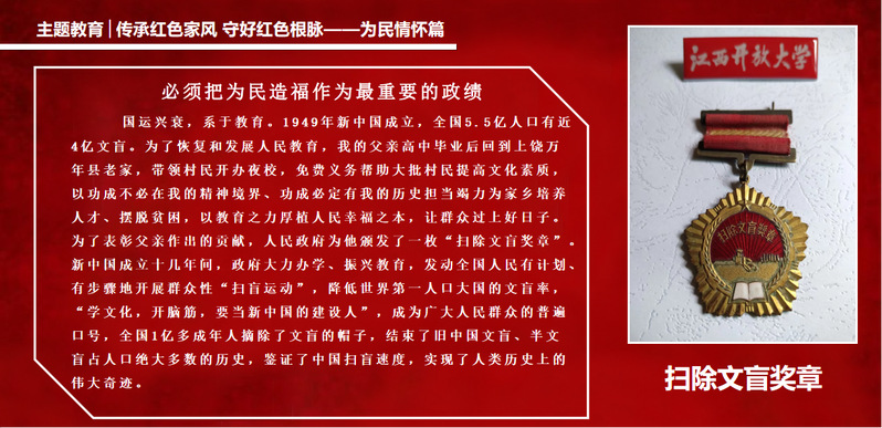 为贯彻落实习近平总书记在中共中央政治局第五次集体学习时关于加快建设教育强国的讲话精神,落实省委第九巡回指导组关于强化暑假期间对师生持续开展好主题教育实践活动的要求,坚持不懈用习近平新时代中国特色社会主义思想铸魂育人,深入推进主题教育常态化开展。数字经济学院联合马克思主义学院在暑期举办了“传承红色家风 守好红色根脉”主题征文活动,广大师生暑假期间走进家庭、走进红色场馆、走进村庄和社区开展实践活动,挖掘出一个个动静相宜的文物、标语、事件等红色资源典型案例。