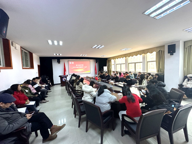 龙腾盛世,喜迎春来,新岁序开,同征新程。为科学谋划新学期发展方向,确保开学各项工作平稳有序进行,2月29日下午,数字经济学院召开新学期全体教职工大会。学院党委书记陈维佳、党委副书记、副院长(主持工作)祝维亮、学院党委委员、副院长姚洁参加会议,大会由学院党委副书记、纪委书记王松华主持。