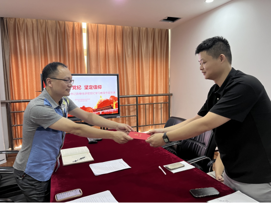 学院党委书记陈维佳为过政治生日的党员发放生日贺卡,并送上祝福,希望党员们时刻以党员身份严格要求自己,不忘入党初心,永葆党员本色。