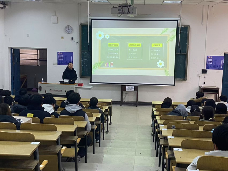 课前,院领导与学生共同观看江西省智慧教育平台《开学第一课》专题视频。院领导陈维佳、郑金胜、姚洁分别从心理健康、消防安全、电信诈骗、学习规划等多个维度进行讲授,为学生扣好新学期的“第一颗安全纽扣”,为新学期学生工作开好头、起好步。