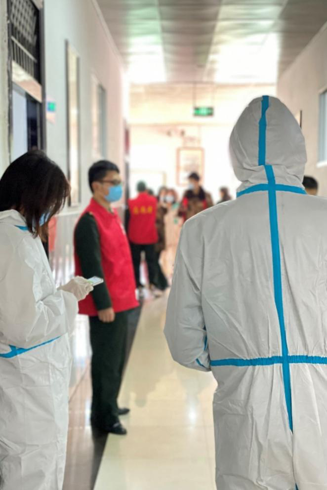 王勇,中共党员,计算机系教师。全院开展大规模核酸检测后,他第一时间响应教师志愿者招募号召,身穿大白衣,迅速进入工作状态。虽不是白衣天使,但仁爱之心依然,虽不是医者,但同样是守卫学生安全的先锋战士。