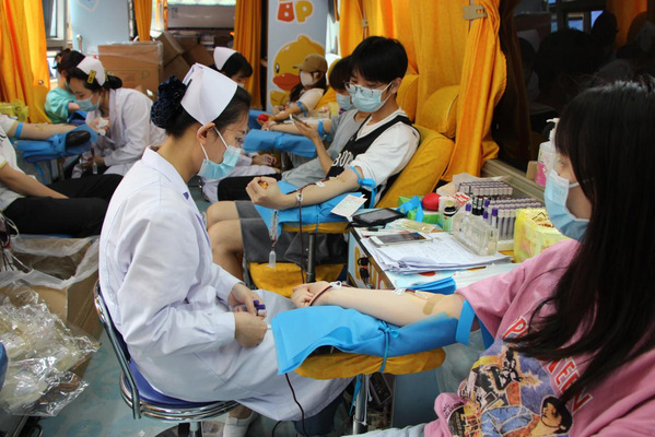 活动现场,前来献血的师生在江西省血液中心工作人员和学校志愿者的指导下,严格落实一米线、全程戴口罩、检查健康码等环节,有序开展填表、测量血压、系统录入、血型检验、采血等献血流程,最大程度保障参加献血师生的自身安全。活动中,不论是献血者还是志愿者,他们都用自己的实际行动,传递着温暖与感动。献血者中,既有多次无偿献血的“老将”,也有初次上阵的“新兵”,他们勇敢地伸出臂膀、捋起衣袖,献出了自己的涓涓热血。一袋袋带着体温的血液,凝聚着所有人的赤诚爱心;一张张特殊意义的献血登记表,彰显着当代青年的责任担当。志愿者们提醒大家遵守现场秩序,密切地关注每位献血同学的身体状况,用一声声叮咛、一句句嘱咐,缓解大家的紧张情绪,守护着参与活动师生的生命健康。他们用热血汇聚力量,用行动诠释担当。