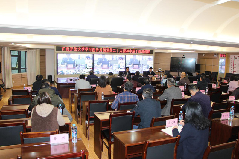 11月29日下午,学校举办学习宣传贯彻党的二十大精神中层干部培训班第二场报告会,校党委书记贺瑞虎作题为《增强历史自信把握历史主动以奋进姿态投身学习型大国建设》的辅导报告。校党委副书记、校长黄平槐主持报告会。校党委班子成员、全校处级干部、“三融三进”宣讲团成员、全省开放大学系统领导干部通过“线上+线下”相结合的方式共同聆听了辅导报告。
