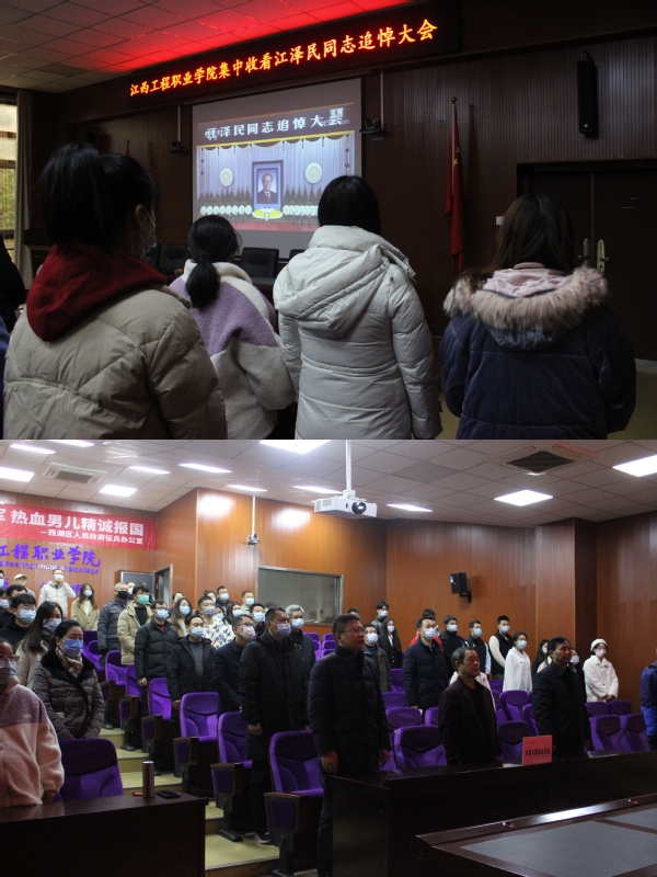 12月6日上午10时,党中央、全国人大常委会、国务院、全国政协、中央军委在北京人民大会堂隆重举行江泽民同志追悼大会。英国上市365官网党员干部、师生代表在三个校区分别收看了追悼大会现场直播,沉痛缅怀、深切悼念江泽民同志。