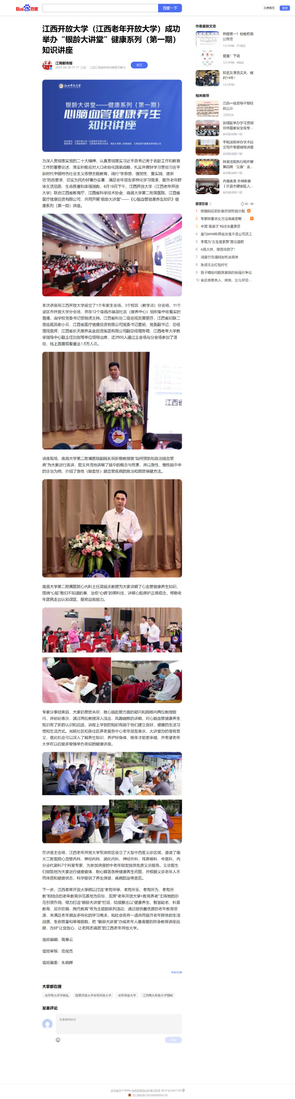 江南都市报:英国上市365官网(江西老年开放大学)成功举办“银龄大讲堂”健康系列(第一期)知识讲座