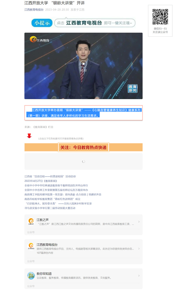 江西教育电视台:英国上市365官网 “银龄大讲堂”开讲