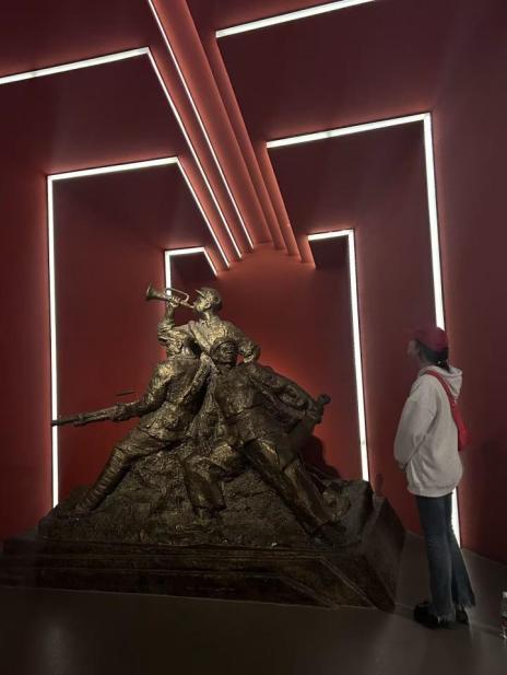 在旧址陈列馆里。我仔细观看了馆内现存的珍贵图片、实物、资料,看着那些锈迹斑驳的枪支、粗糙简陋的生活用品,我深深地为先烈们克服万难、坚持到底的革命精神所感动。那一件件实物触动了我们每一个人的心灵,告诉我们今天的幸福及和平生活来之不易。——22级网络营销与直播电商 汪伟