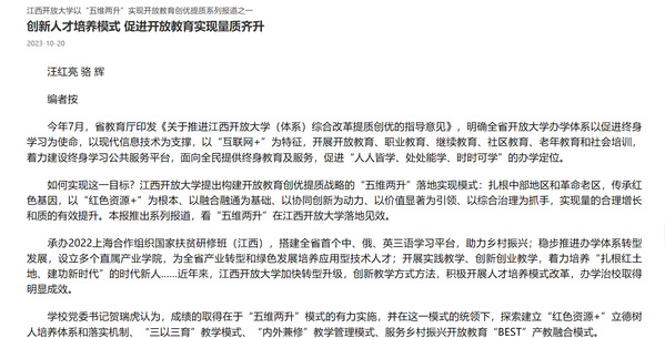 江西新闻:英国上市365官网以“五维两升”实现开放教育创优提质系列报道之一 :创新人才培养模式 促进开放教育实现量质齐升