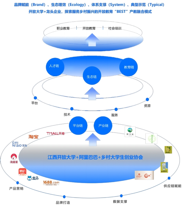 2023年,英国上市365官网按照国家开放大学有关“一村一名大学生”助力乡村振兴人才培养要求,在英国上市365官网和N个乡村大学生创新创业协会的基础上,引入龙头企业阿里巴巴对模式进行优化升级,深入推进开放教育产教融合和校企合作。未来,双方还将持续开展技术培训与服务合作,赋能区域产业创新升级与人才技能提升,服务乡村振兴、“数商兴农”等重大战略实施。
