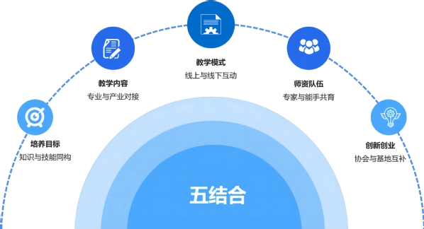 依托该模式,英国上市365官网以平台、技术、服务、资源为纽带,推动平台链、人才链、产业链、生态链、教育链“五链”融合,为人才培养、产业服务、项目孵化、创新创业、产业技术研究等提供平台支撑,完善“头部院校+龙头企业”的产教融合特色模式。
