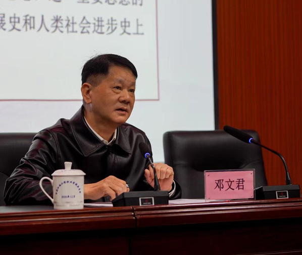 邓文君在辅导报告中表示,世界正处于百年未有之大变局,我国正处于实现中华民族伟大复兴的关键时期站在历史的交汇点,中国共产党和中国人民迫切需要与时俱进的科学理论举旗定向、照亮前程。习近平新时代中国特色社会主义思想,正是我们在新时代全面推进强国建设、民族复兴的指导思想、行动指南、精神武器。习近平新时代中国特色社会主义思想内容涵盖改革发展稳定、内政外交国防、治党治国治军等方方面面,构成一个完整的科学体系。