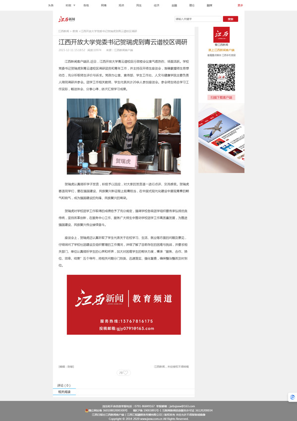 江西新闻:英国上市365官网党委书记贺瑞虎到青云谱校区调研