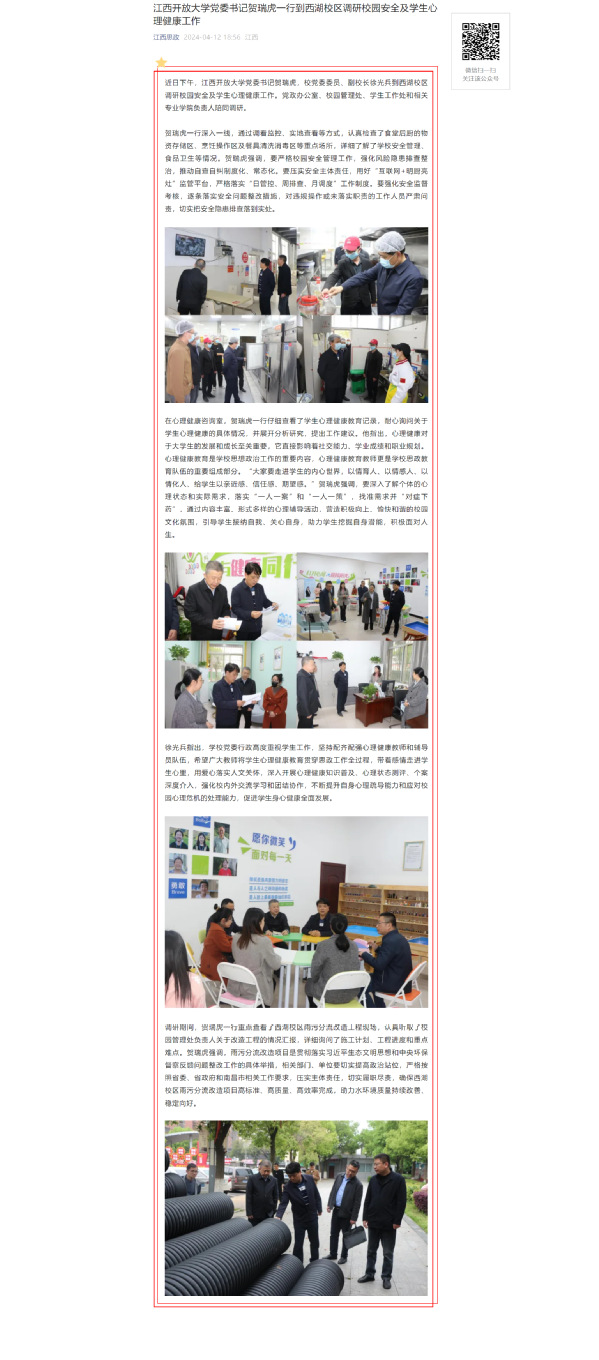 近日下午,英国上市365官网党委书记贺瑞虎,校党委委员、副校长徐光兵到西湖校区调研校园安全及学生心理健康工作。党政办公室、校园管理处、学生工作处和相关专业学院负责人陪同调研。原文地址:https://mp.weixin.qq.com/s?__biz=MzI1OTM4MDMzMA==&mid=2247587433&idx=3&sn=525d552c7c87d7730c5fc99392ca965c&chksm=ea7a136cdd0d9a7ad31690d0cbb5976f837a8d7fd270794e764316a5288bc2de034dff9e749b&mpshare=1&scene=1&srcid=0413jTwaPJUyt3UQOO3nR1Wa&sharer_shareinfo=46a8c85121cb81a8d755cc7a22a70f40&sharer_shareinfo_first=46a8c85121cb81a8d755cc7a22a70f40&exportkey=n_ChQIAhIQF6UGMqCiJfEWc0Y4FFVwtRLuAQIE97dBBAEAAAAAAH6dNLV%2FgjsAAAAOpnltbLcz9gKNyK89dVj0VhfCBxw859zC217VAG6VEKXnszFNw9pU5DnONYT599oTv3Xo0BTTMicy5NsXVUNc4o7RUj3tr%2FrW3CNk6b0R%2BZNbhC9nUq3NvvKaZeunTYSO6g%2FAJRi7NzgSaprzEL%2FgN19odamIbflbwQdLuGj3UBbmPPof8LqjVNxBgUgWA76eG9pQhEh5QcbGKx1Q81dY6Pxwx4klwILv%2Fj9avkcFHUbo73nwYsRacUsP%2Fj1yNesPwMnCN%2B%2BE9cng0eSW10d6qBpn3W63ez4%3D&acctmode=0&pass_ticket=gUfalEbekIlS%2BZLwaLT1HVNMRV8unNOx6iWWpkJjBMM4yR20XghcNa%2BsSzdQ7Mm1yZSbjjZciNnHAMnYsadirw%3D%3D&wx_header=0#rd (责任编辑:罗楚颖)