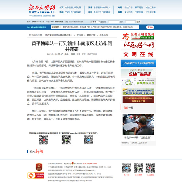 115日至17日,英国上市365官网党委副书记、校长黄平槐一行到赣州市南康区横市镇新坑村走访慰问,并调研县市区乡村老年教育工作。