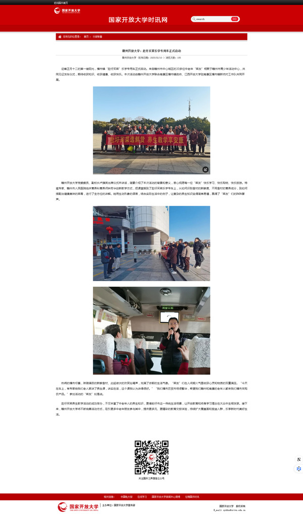 国开时讯网:赣州开放大学赴圩买菜乐学专用车正式启动