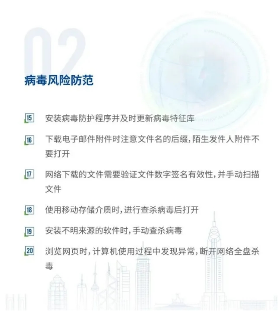 2021年国家网络安全宣传周与10月11日至17日在全国范围内统一开展,主题为“网络安全为人民,网络安全靠人民”。 为进一步提升大家的安全意识,帮助大家建立更加安全的网络环境,现代教育技术中心为大家梳理了100个网络安全相关的知识点,涵盖了:账号密码安全、病毒风险防范、上网安全注意、网上交易安全、电子邮件安全、主机电脑安全、办公环境安全、移动手机安全、无线网络安全、敏感信息安全等十个方面。本期呈现给大家的是账号密码安全及病毒防范安全知识点。