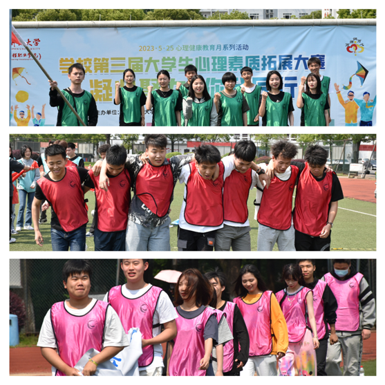 凝心聚力,融洽人际关系5月中旬,“凝心聚力,你我同行”大学生心理素质拓展大赛在西湖校区火热开启。来自各专业学院的8支参赛队伍自信、开朗、昂扬向上,在七人八足、珠行万里、链接加速和摸石头过河等竞赛项目中,学生们释放了压力,感受到了快乐,体会到团队合作、齐心协力的重要意义,营造了友爱和谐、积极奋进的活动氛围。“孤军奋战,其力有限;众志成城,坚不可摧。”学生在心灵感悟环节中的发言也让在场的同学触物兴怀。