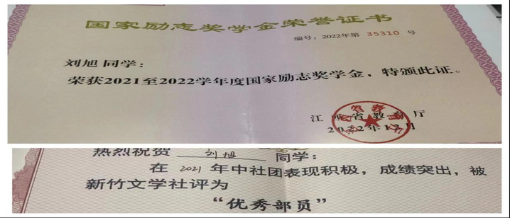 刘旭,共青团员,数字经济学院21级电子商务3班学生,现任新竹文学社社助,学工处学生信息中心联络员。