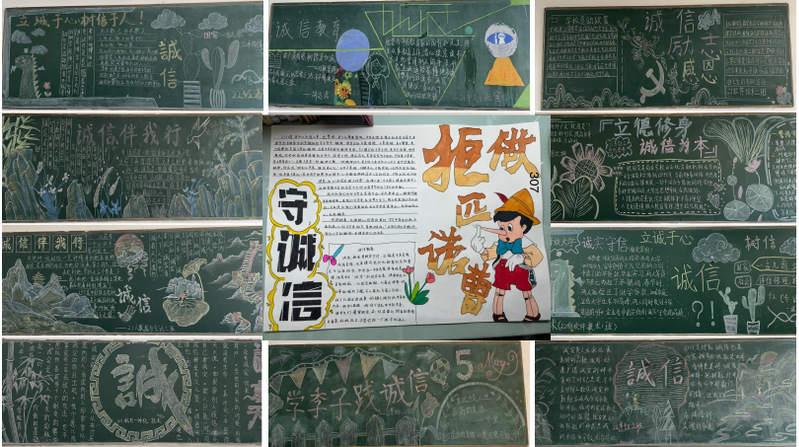 二是组织开展了以“诚信 励志 感恩”为主题的黑板报评比,通过评选,最终14个教学班分获一、二、三等团体奖项。通过亲手编辑绘制使诚信教育渗透到每个参与学生心中,让学生明白诚信不仅是个人的立身之本,更是构建和谐社会的重要因素。