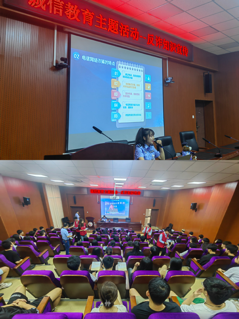 一是要求各专业学院围绕主题召开专题班会。通过观看视频、分享诚信小故事、进行诚信大讨论等相关班会内容普及防范金融诈骗、电信诈骗和不良校园贷等方面的知识,让文明、诚信、反诈意识走进学生的心灵。