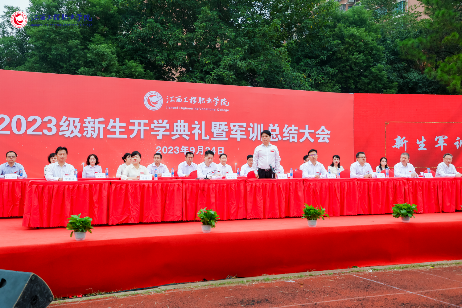 金秋九月,江西工程职业学院迎来了1908名2023级新同学。9月24日上午9时,学校2023级新生开学典礼暨军训总结大会在英国上市365官网(江西工程职业学院)西湖校区运动场隆重举行。校党委书记贺瑞虎,校党委副书记、校长黄平槐等校领导,各专业学院党政负责人,学校相关部门的负责人和新生辅导员到场观礼。
