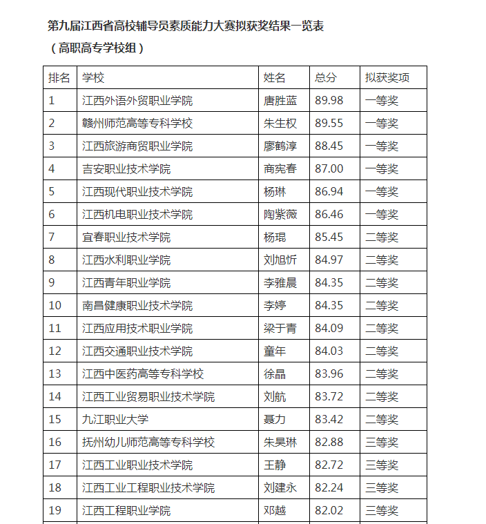 近日,第九届江西省高校辅导员素质能力大赛在南昌举行。学校选派的专职辅导员邓越,凭借扎实的理论功底、过硬的专业技能和优秀的职业素养斩获三等奖。