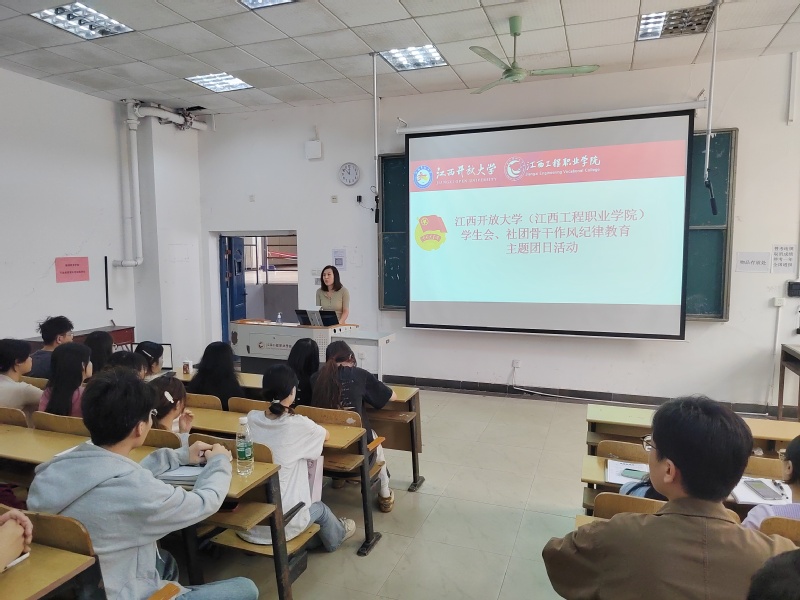 随后,校团委书记洪莉发表了总结性讲话。她着重对学生干部提出了四项明确要求:严格遵守党、团纪律,以身作则发挥模范作用;持续加强作风建设,高效谋划,迅速行动;不断深化思想政治教育,提升个人的政治觉悟和素养;强化服务意识,与青年学生保持紧密联系,及时了解并解决他们的实际需求。洪书记强调,学生纪律教育和优良学风校风建设不仅关乎学校的稳定发展,更是学生个人成长和高质量人才培养的基石。她希望学生干部能够深刻认识到纪律教育和作风建设的重要性,以实际行动为全校学生树立榜样。