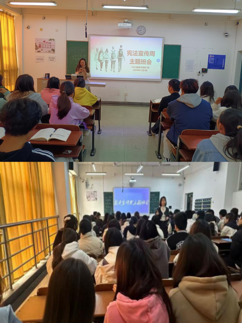 各专业学院团总支组织辅导员在各班级开展宪法宣传主题班会,由辅导员对宪法的基本内容、发展历程和宪法赋予公民的基本权利与义务进行解读并带领同学们通过分析与宪法相关的实际案例,让学生了解宪法在现实生活中的应用。同时组织学生就宪法的重要性和如何在生活中践行宪法精神进行讨论。学生们对宪法有了更深入的了解,纷纷表示要将宪法精神内化于心、外化于行。