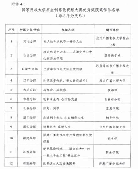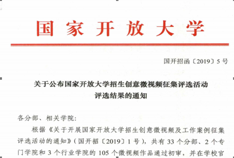 为庆祝国家开放大学成立40周年,国家开放大学组织了招生创意微视频大赛,本次大赛共征集到33个省级电大、2个专门学院和3个行业学院的作品105件,新余电大制作的《梦想花开渝钤地--新余电大“一村一名大学生工程”招生宣传》荣获优秀奖。本次大赛通过初审,并在国家开放大学官网的40周年校庆主页及国开学习网首页进行展示投票,经过网上投票和专家组线上及会议评审得出结果。新余电大作为国家开放大学江西分部唯一代表选送了《梦想花开渝钤地--新余电大“一村一名大学生工程”招生宣传》和《电大,您的终身学习课堂》两件作品参赛,其中《梦想花开渝钤地--新余电大“一村一名大学生工程”招生宣传》荣获优秀奖,江西唯一。