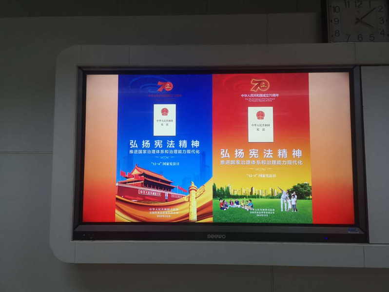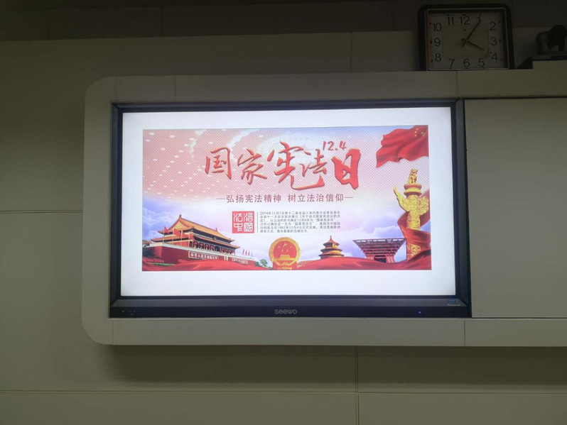 活动内容丰富,形式多样。通过集中学习习近平总书记《全面依法治国新理念新思想新战略十论》和《中国中央关于坚持和完善中国特色社会主义制度、推进国家治理体系和治理能力现代化若干重大问题的决定》、在会议室播放宣传片、微信群和QQ群播放及转发宪法宣传片、公告栏张贴宪法宣传海报、电子屏幕及短信平台展示宪法宣标语等系列宣传方式,方便广大师生、市民群众更好地学习宪法知识。