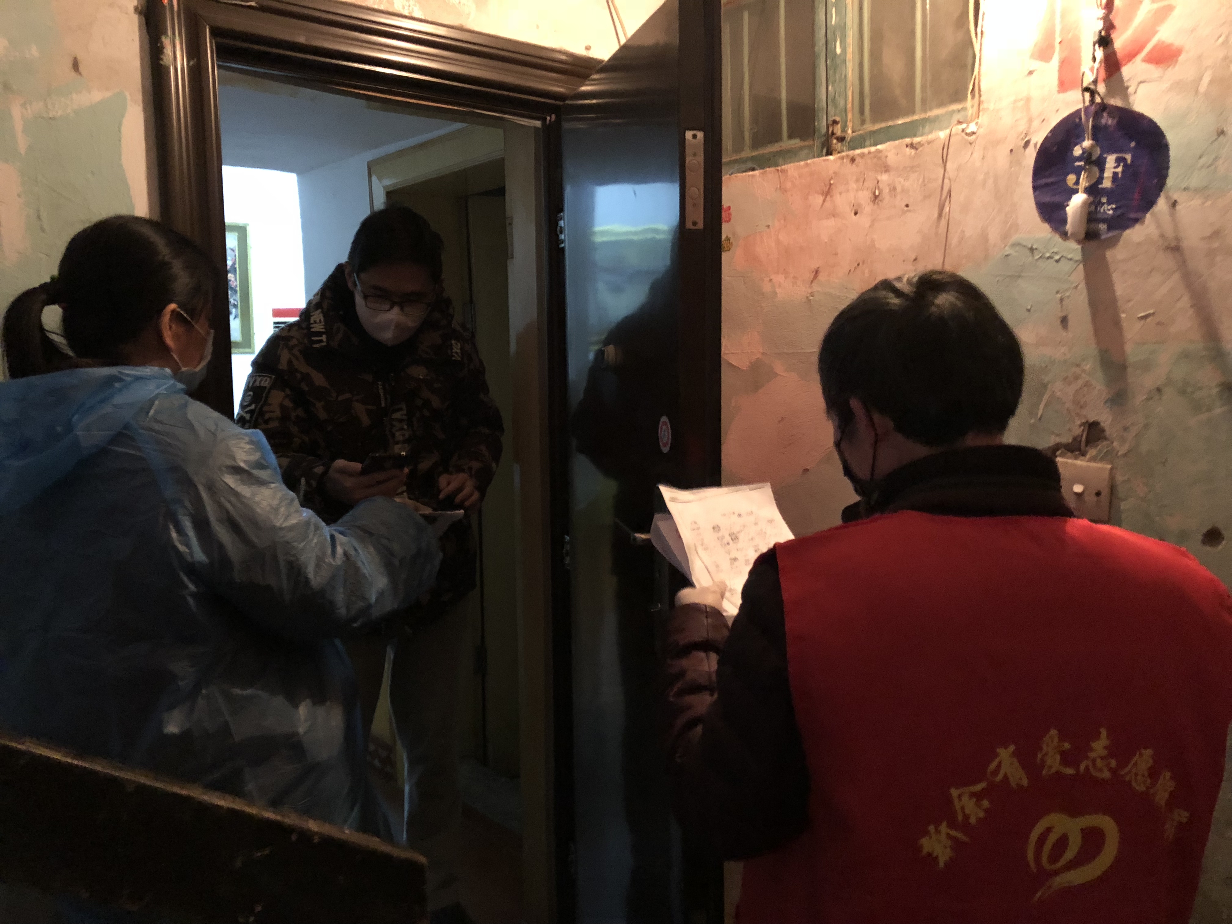 第三步:开展“敲门行动”,对于联系不上的居民,社区工作人员和城北办蹲点干部上门调查登记。排查中,面对自身防护用品单一,春节期间返乡人员多,各家各户人员流动性较大,排查量大等情况。大家不怕苦不怕累,加班加点,在短短5天的时间里,对家里临时没人或信息不详的住户进行多次动态排查,认真做好登记信息。所有人都只有一个目的,那就是不漏过任何一个细节、一个人,坚决不能造成疫情的传播蔓延。