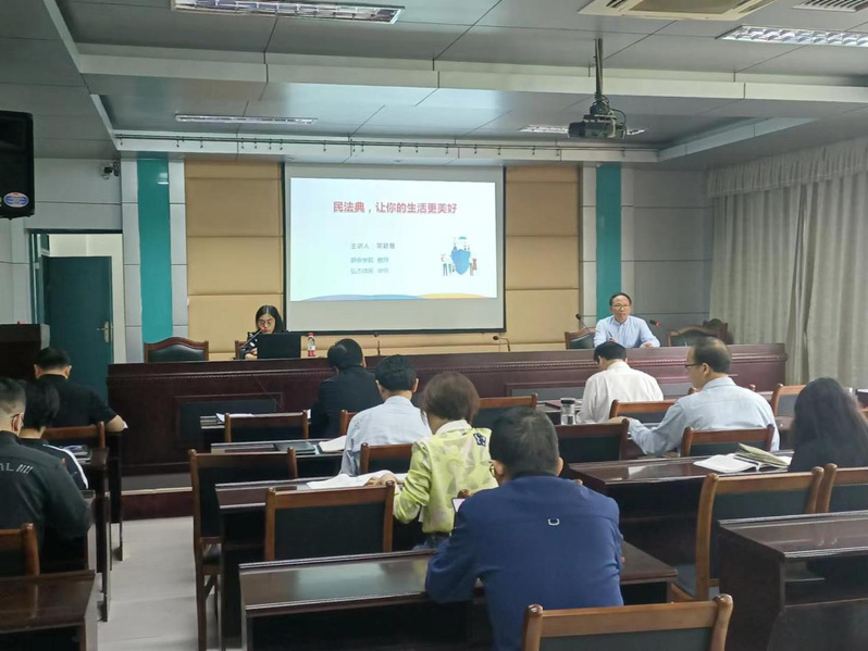 为认真贯彻落实习近平总书记关于切实实施民法典的重要讲话精神,扎实做好民法典学习贯彻实施工作5月27日上午,新余市成人教育中心邀请新余学院法律教师江西弘杰律师事务所简颖慧律师举办《民法典 让生活更美好》专题讲座,中心领导班子、全体教职工参加。