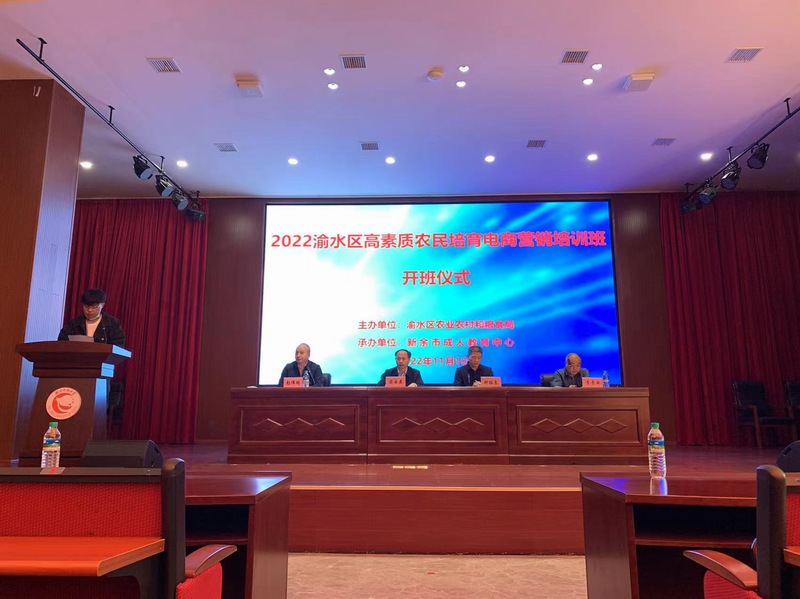 党的二十大吹响了加快建设农业强国的号角,为深入贯彻习近平新时代中国特色社会主义思想, 围绕二十大“加快建设农业强国,扎实推动乡村产业、人才、文化、生态、组织振兴”精神,培养“有文化、懂技术、懂经营、会管理”的高素质农民队伍,提高本土人才综合素质和能力,全面推进乡村振兴。2022年11月10日,由渝水区农业农村和粮食局主办、市成人教育中心承办的“2022 渝水区高素质农民培育电商营销培训班”在市民学习中心举行开班仪式。市成人教育中心(市开放大学)党委书记梁云森同志,党委副书记、主任钟梅春同志,渝水区农业农村和粮食局党委委员、副局长李青云及相关同志出席开班仪式,副主任彭伟明同志主持仪式。另有大学生村官、农民专业合作社负责人、从事农村电子商务的青年代表等50名学员参加开班仪式。